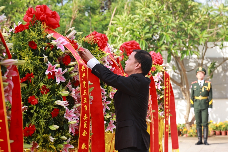 当天,省委常委、市委书记王祺扬在海口参加海南省向英雄烈士敬献花篮暨《烈士光荣证》颁授仪式。市委副书记、市长陈希,市政协主席林海宁,市委副书记邹家明等市领导参加三亚市向革命烈士敬献花篮仪式。