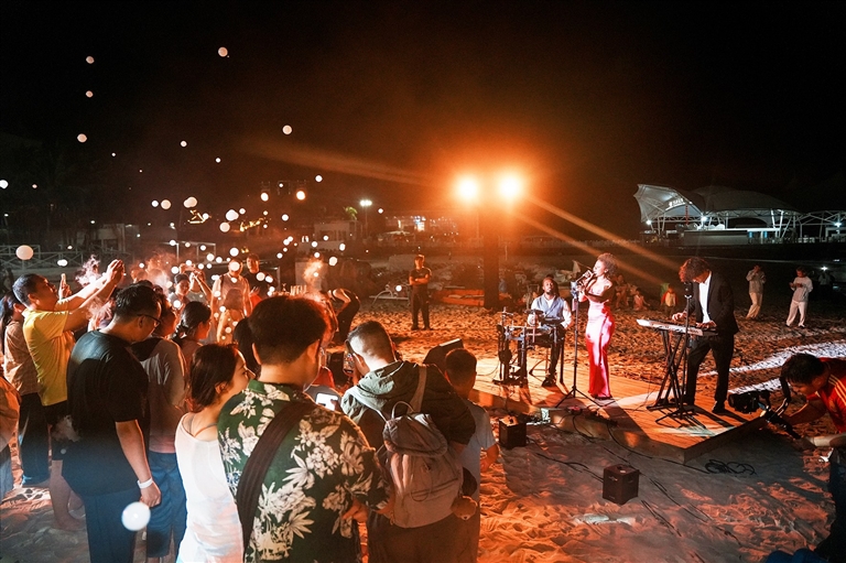 游客在蜈支洲岛体验浪漫的夜晚。胡拥军摄