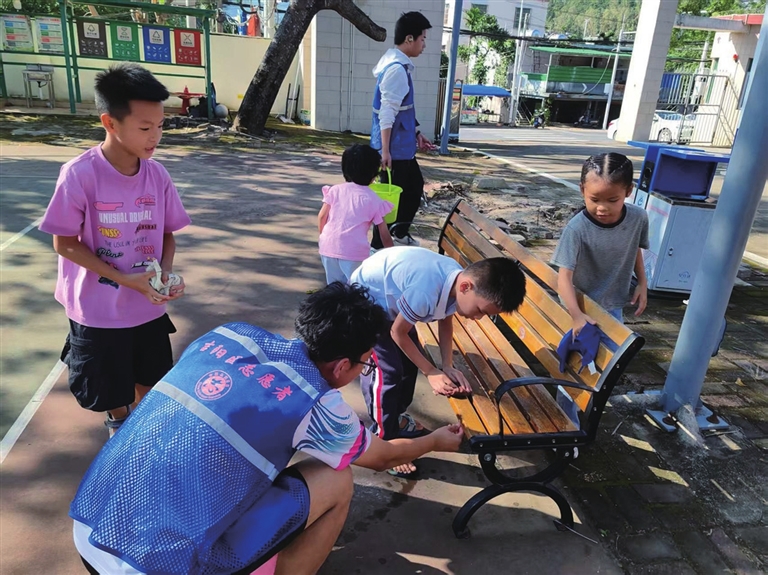 为深入弘扬志愿服务精神,引导青少年主动融入社区治理实践,近日,在团吉阳区委的精心指导下,落笔大社区团委联合区委组织部、区关工委共同发起“大手牵小手清洁‘益’起走”双青联动环境卫生清洁志愿活动。一支由青年志愿者带领青少年组成的特殊志愿小队,穿梭在社区的各个角落,用弯腰清扫的身影践行文明理念,以携手协作的姿态传递志愿温度。