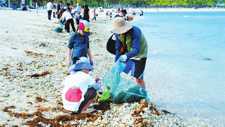 志愿者积极参与净滩活动,守护沙滩洁净。