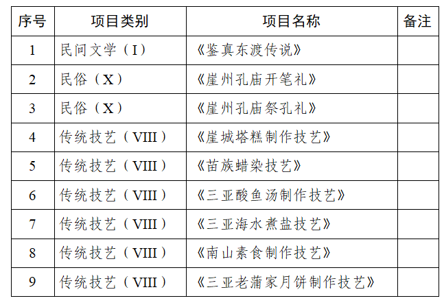 附件:《鉴真东渡传说》《崖州孔庙开笔礼》等9个非遗项目名录申报简介