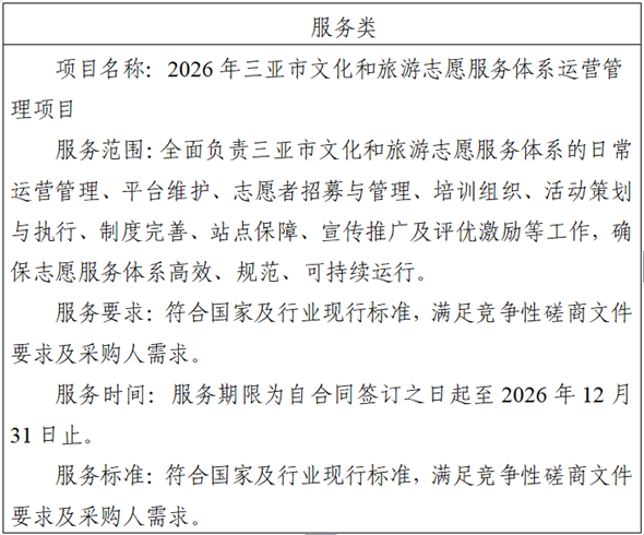 二、项目名称:2026年三亚市文化和旅游志愿服务体系运营管理项目