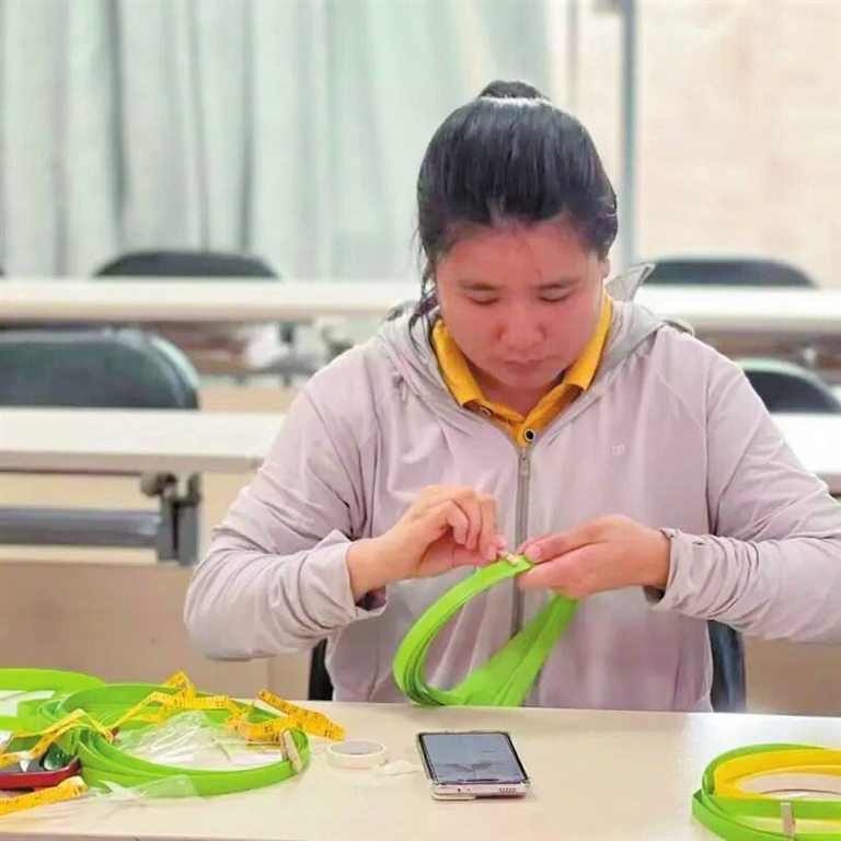 竹编实操环节乐趣满满。在工作人员耐心指导下,居民们从理竹丝、编底纹入手,穿、插、绕、挑,一步步摸索编织技巧。指尖与竹丝轻轻碰撞,一根根普通的竹条逐渐变成精巧的竹编包。