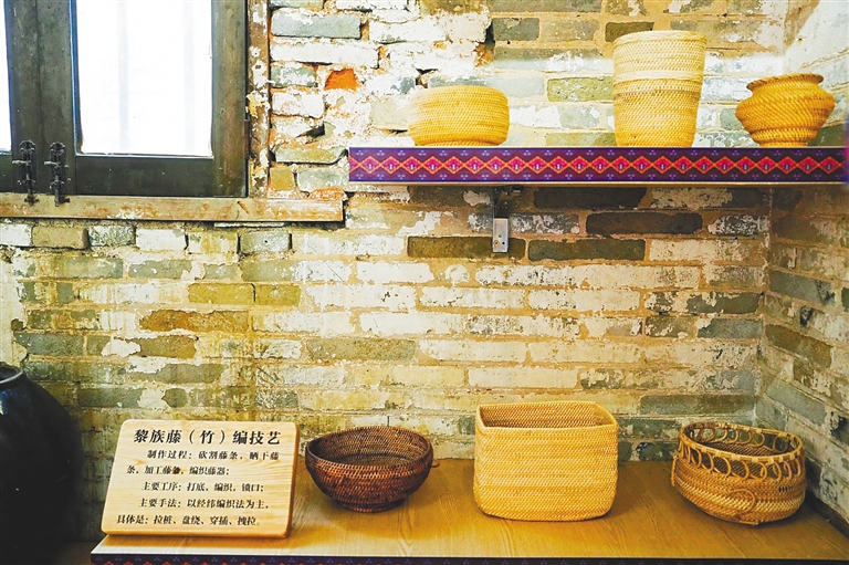 崖州小馆里展陈的黎族藤(竹)编作品。三亚市文化馆供图